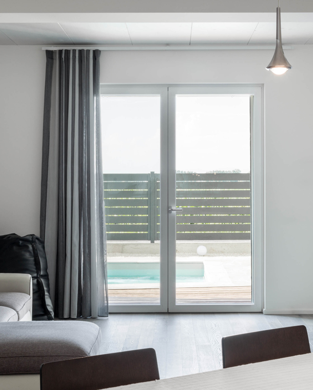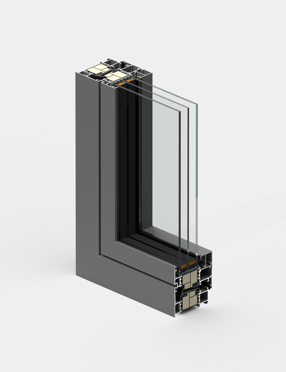 Queste finestre offrono un ottimo isolamento termico e acustico, grazie alla verniciatura con polveri termoindurenti, alla guarnizione a cappuccio in EPDM, al riempimento poliuretanico ad alta efficienza energetica e alla barra in ABS. Il vetro isolante triplo, con distanziatori dei vetri (warm edge) in acciaio rivestito con policarbonato “Chromatech Ultra”, completa le prestazioni di isolamento garantendone un’alta efficienza.