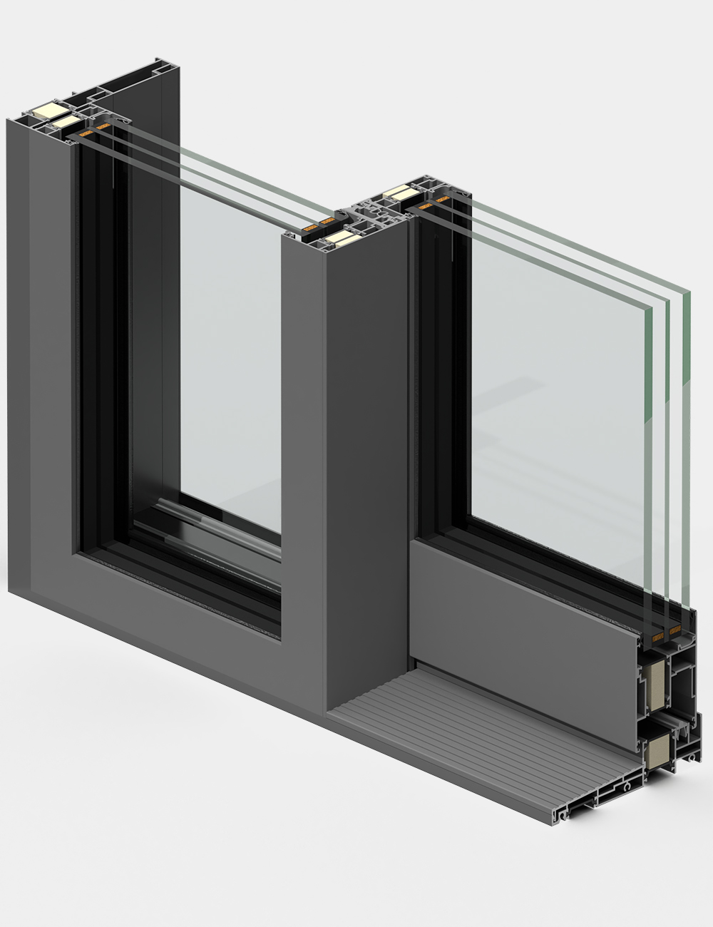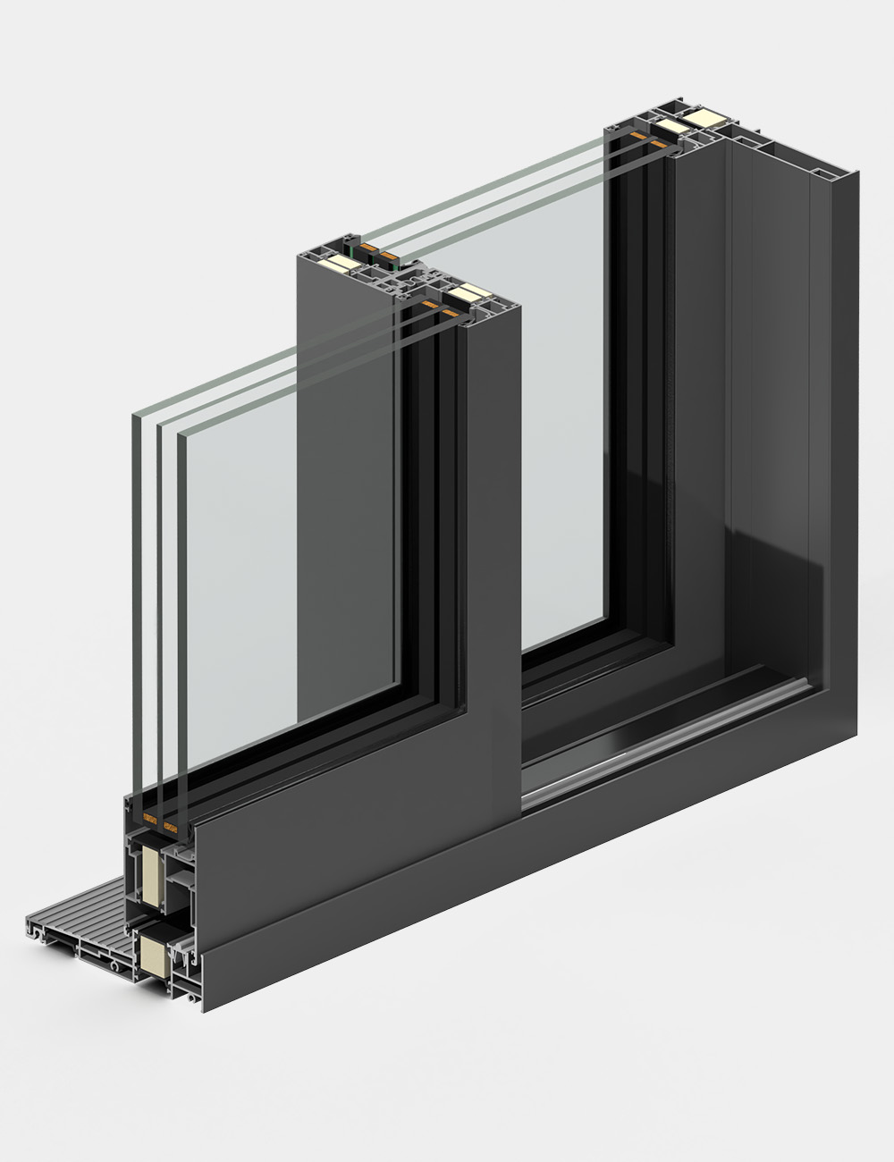 I profili sono caratterizzati da un’ottima statica e un perfetto bilanciamento che ne favorisce l’elevata scorrevolezza, l’interruzione del ponte termico è garantita dall’inserimento nel telaio di barrette in poliammide rullate meccanicamente dopo apposita zigrinatura per garantirne un perfetto aggrappaggio.