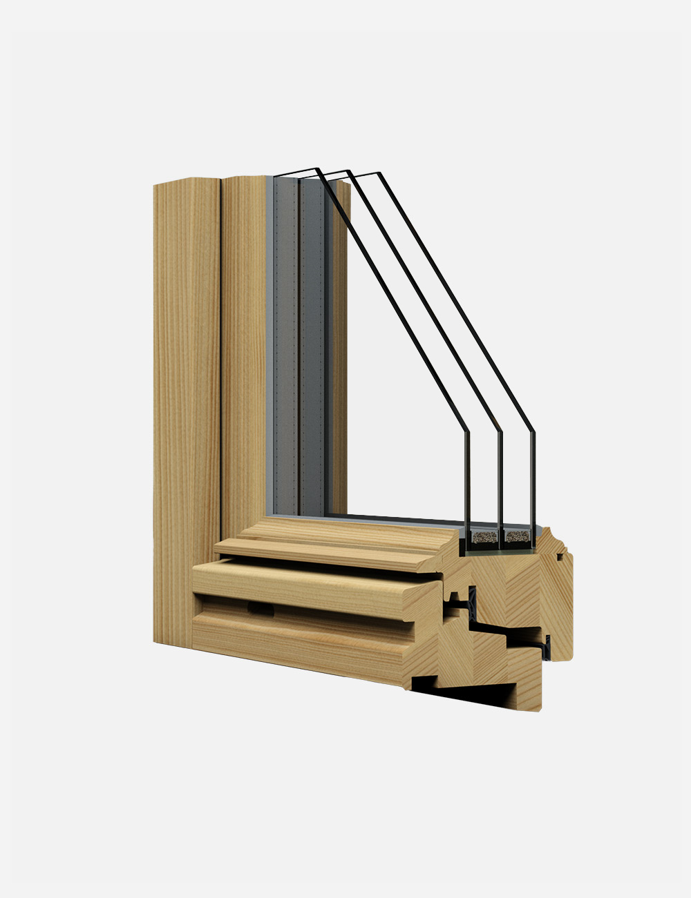 Il vetro isolante è triplo, con un valore di trasmittanza termica (Ug) di 0,5 W/m²K. Questo garantisce un’elevata efficienza energetica, riducendo i costi di riscaldamento e raffreddamento. Utilizza un distanziatore per il vetro SWISSPACER® (warm edge), ad alta l’efficienza energetica.