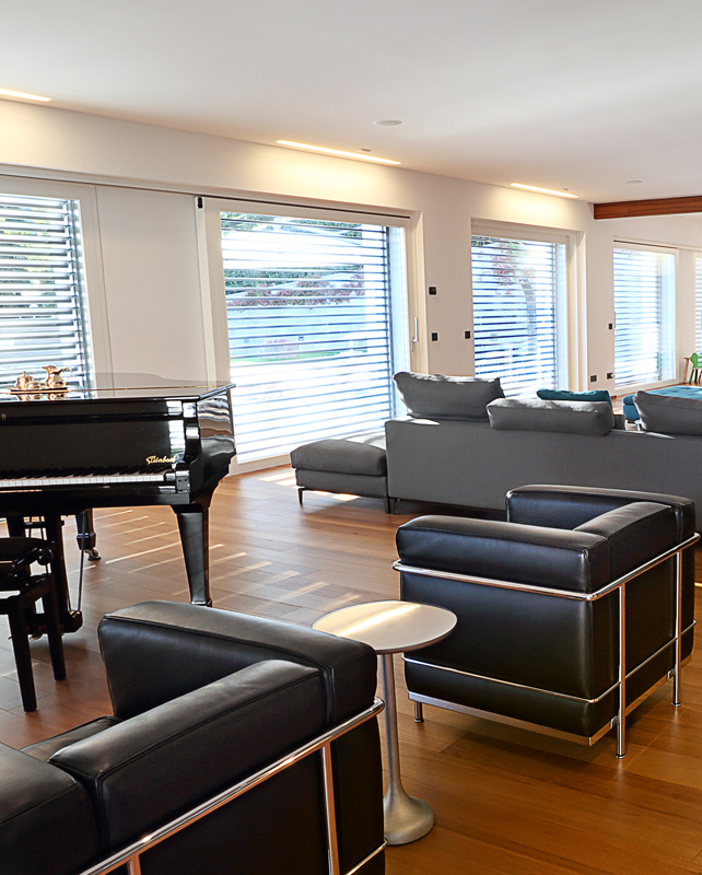 Struttura interamente metallica con lamelle autoportanti. Lamelle in gradevole forma sinusoidale. Più utilizzo della luce diurna, meno abbagliamento con la tipica posizione d’ombreggiamento di circa 45°. Meccanismo di sollevamento e regolazione integrato nelle guide laterali. Sollevamento laterale con catene a rulli in acciaio. Catena di cerniera inossidabile per la regolazione delle lamelle in ciascuna posizione delle tende. Impostazione di abbassamento in 2 varianti, sollevamento delle tende con luminosità con lamelle orizzontale. Buona funzione di oscuramento.