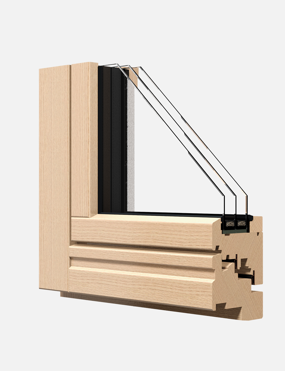 Linius SL non solo è bella da vedere, ma offre anche un elevato comfort abitativo. Il telaio in legno lamellare di conifera, proveniente da foreste gestite in modo sostenibile, garantisce un’ottima tenuta termica e acustica. Il triplice vetro termoisolante con distanziatore SWISSPACER® warm edge contribuisce a ridurre al minimo la dispersione di calore, consentendo un risparmio energetico significativo.