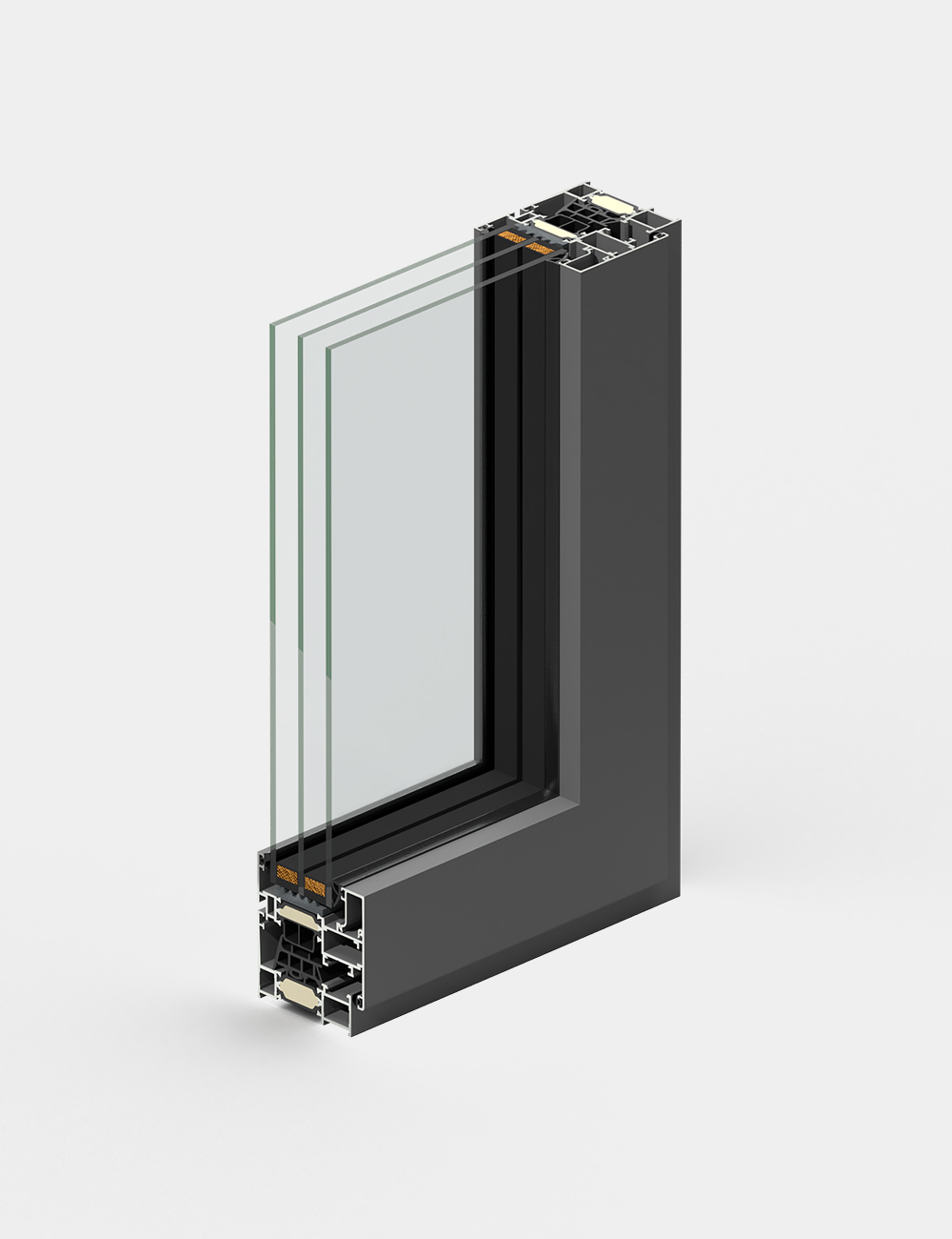 Il sistema di vetro triplo isolante offre un isolamento ottimale, coadiuvato dal distanziatore vetro “warm edge” in acciaio rivestito con policarbonato “Chromatech Ultra”, che contribuisce ulteriormente a migliorare l’efficienza energetica e ridurre le perdite di calore.