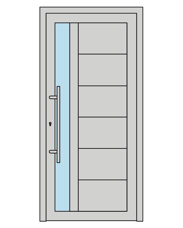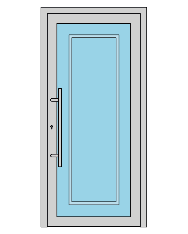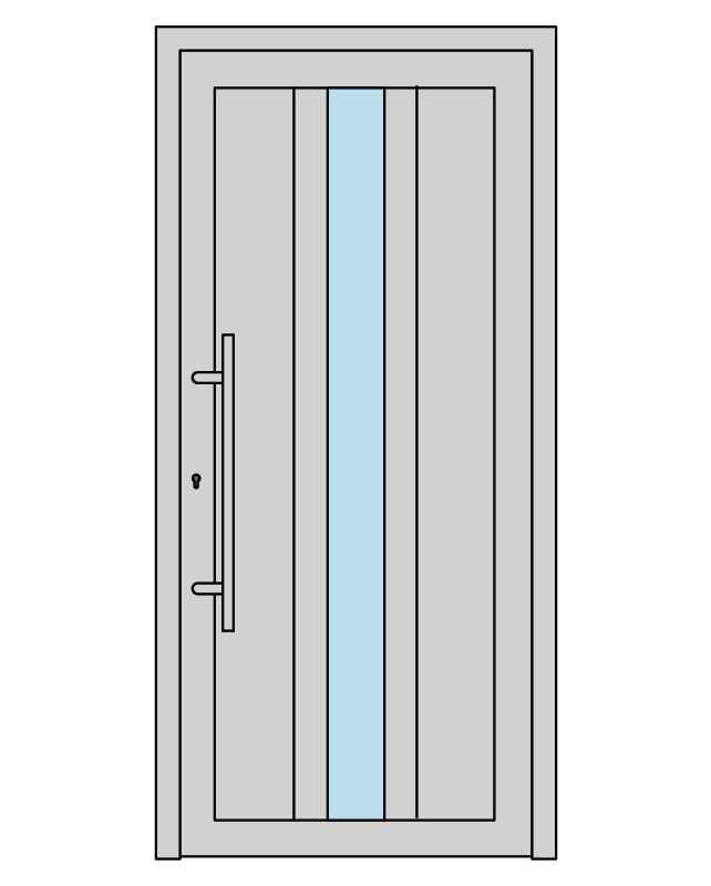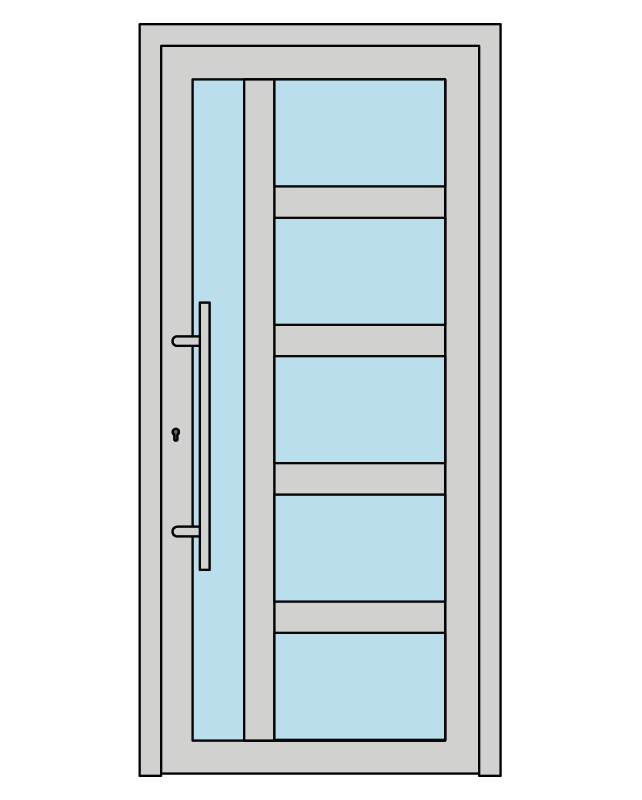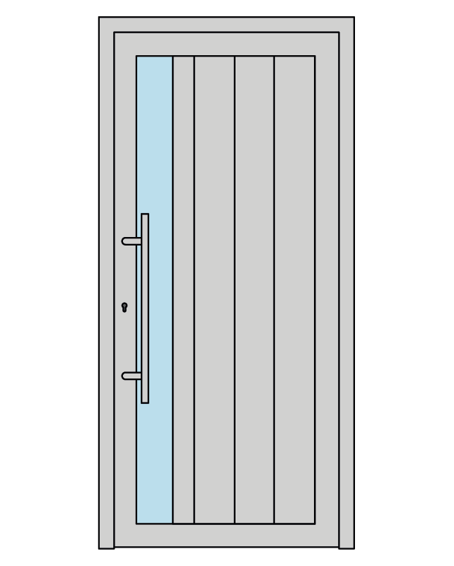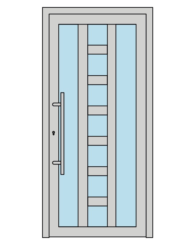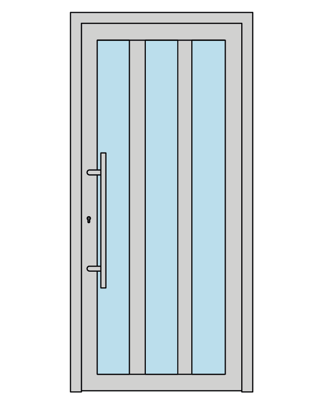 Cerniere regolabili a vista con apertura a 180° garantiscono un movimento fluido e silenzioso del portone, mentre il maniglione (di serie) inox AISI 316 verticale con attacco dritto e la maniglia interna in acciaio inox conferiscono un tocco di classe all’ingresso della tua casa.