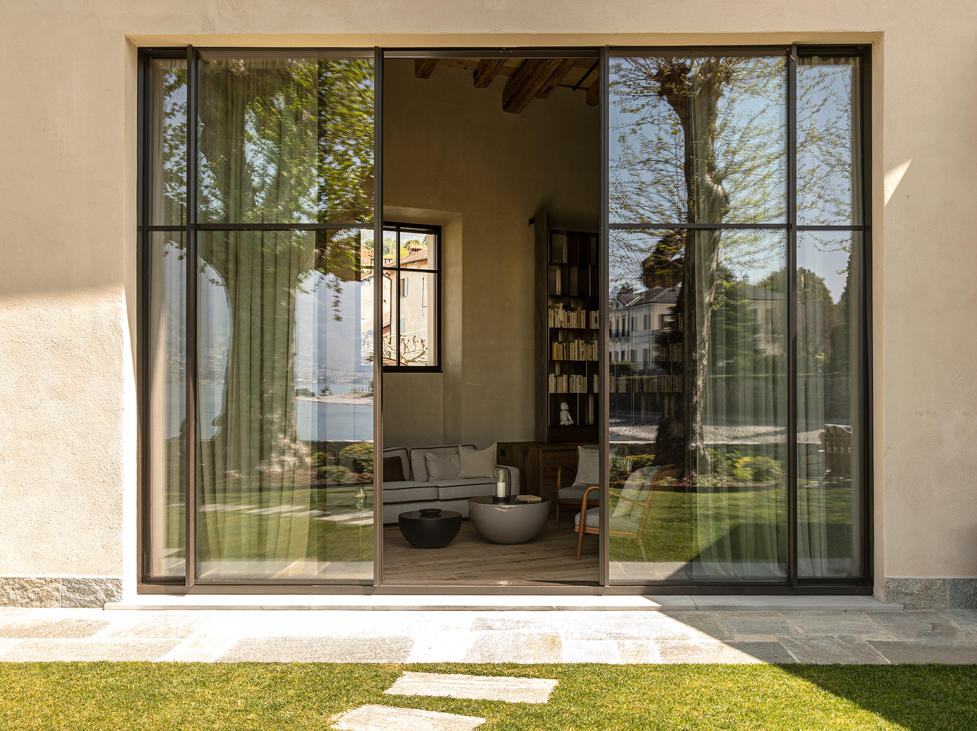 Atelier di Loppia è una moderna proprietà fronte lago che combina lusso con un’atmosfera privata e rilassante. Per gli infissi i progettisti si sono affidati alla nostra esperienza, scegliendo i modelli MiniSlim e le finestre scorrevoli Aluslide® Minimal. La scelta della serie MiniSlim, è stata compiuta per il suo design accattivante e le dimensioni ridotte, che la rende particolarmente apprezzata dai progettisti che desiderano massimizzare l’apporto di luce con una sezione di profilo visivamente minimale. D’altra parte, le scorrevoli Aluslide® Minimal rappresentano l’avanguardia nel mondo dei serramenti, fondendo armoniosamente alluminio e vetro. Questo modello ridefinisce il concetto tradizionale di scorrevole con un profilo minimale e una movimentazione impercettibile, introducendo un nuovo standard estetico per gli infissi. L’uso dell’alluminio, con le sue caratteristiche prestazionali uniche, e dei prospetti a tutto vetro, minimizza la percezione del divario tra interno ed esterno, restituendo al paesaggio la sua naturale maestosità. Questi nuovi infissi si adattano perfettamente al design della villa di Atelier di Loppia, integrandosi armoniosamente con l’arredamento ricercato che combina elementi moderni e antichi, legno e metallo.