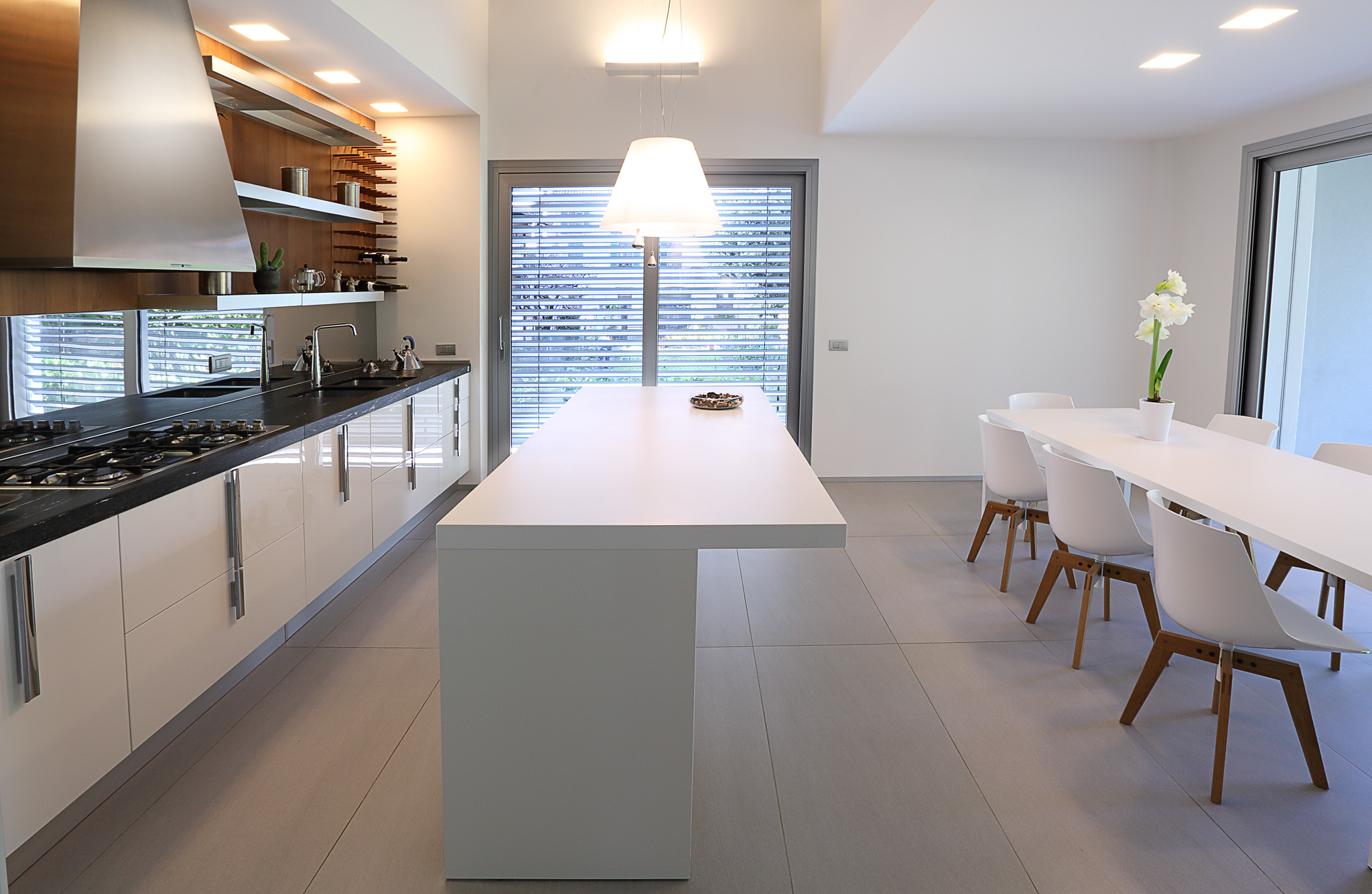 Questi profili eccezionali garantiscono un’illuminazione naturale senza pari, grazie alla sezione di profilo in vista ridotta al minimo. I meccanismi e gli accessori di alta qualità, con un design funzionale, offrono prestazioni eccezionali. L’ampia gamma di profili, assortimento di accessori e le finiture di qualità superiore hanno reso possibile l’adattamento perfetto a questa villa.