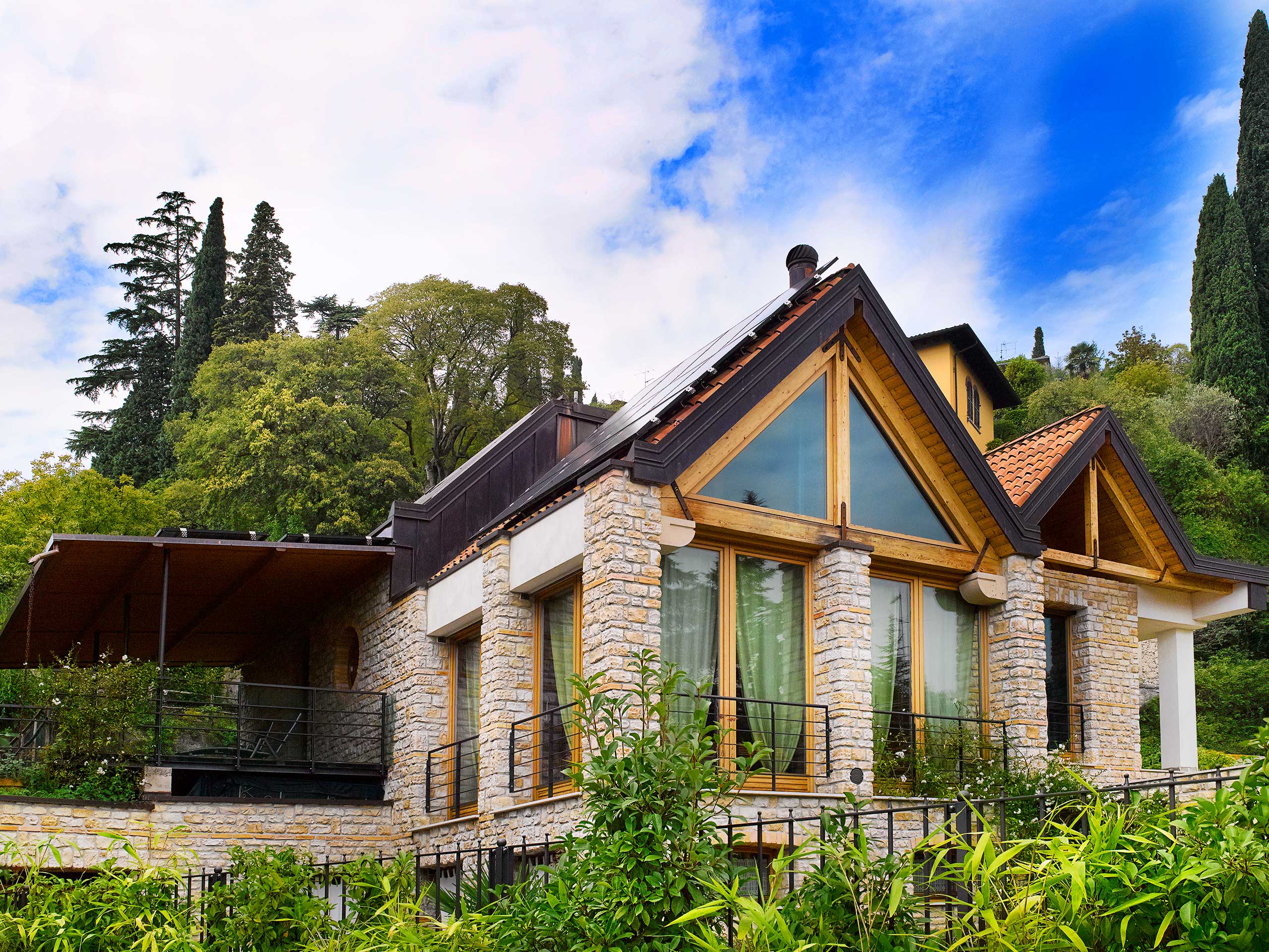 Villa Salò, situata nell’omonima città, si distingue per la sua architettura caratterizzata da mattoni a vista e meravigliose travi in legno che conferiscono eleganza e raffinatezza alla sua struttura. SMP ha adattato con maestria i propri infissi alle peculiarità della villa, accentuandone ulteriormente i suoi pregi e offrendo agli abitanti la possibilità di godere appieno della splendida vista sul giardino circostante.